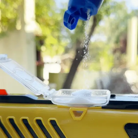 Dankzij de sterkere veer schiet je met een compacter zoutpatroon, waardoor je zelfs vliegende insecten makkelijker raakt. Het duurzame zoutreservoir laat je razendsnel herladen in het heetst van de strijd. En het mooiste is: je hebt geen batterijen of gif nodig – keukenzout volstaat.