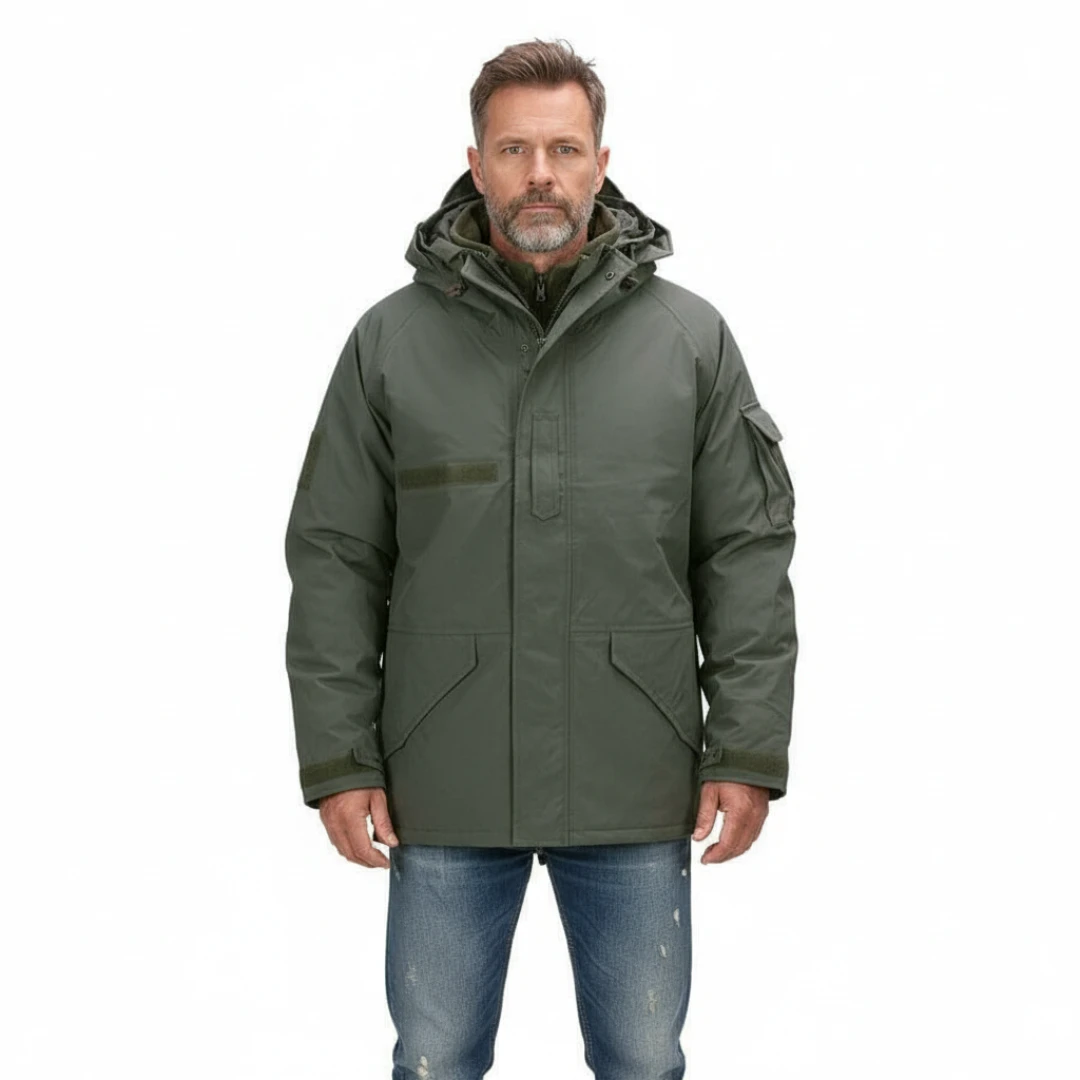 Militaire Parka gemaakt van 100% nylon. Perfecte jas voor de natte en koude winterdagen. Deze militaire parka biedt perfecte bescherming tijdens energievragende activiteiten, zoals skieën en snowboarden.