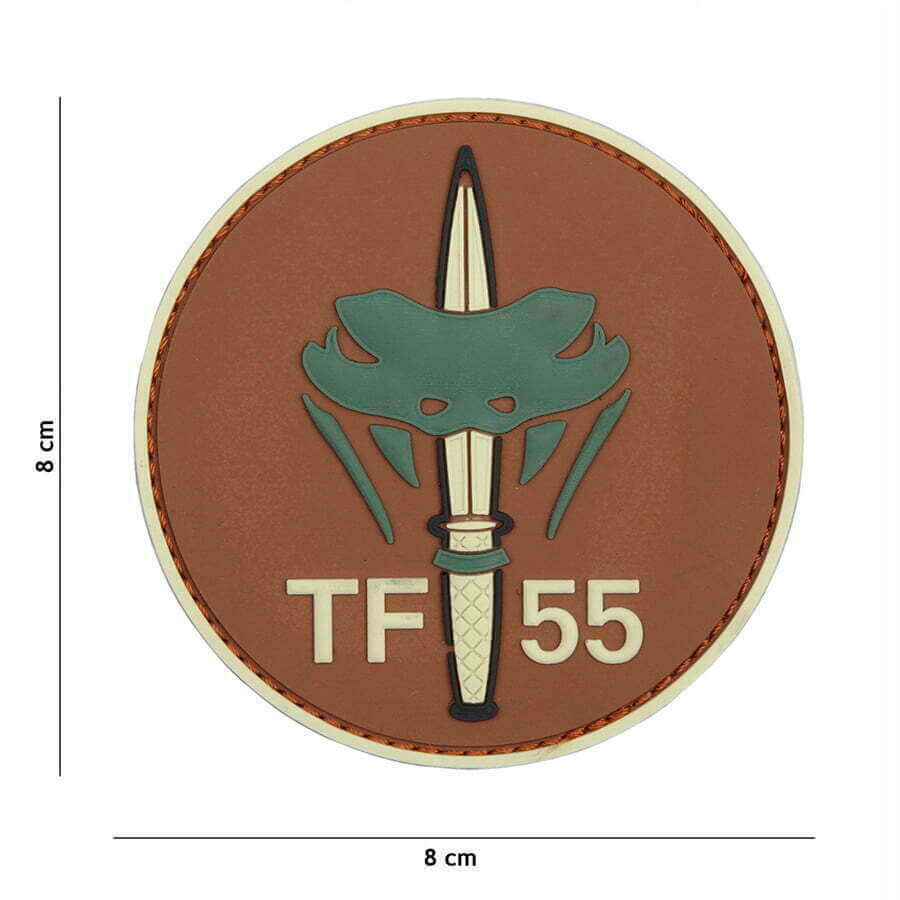 Embleem 3D PVC TF-55 met klitteband aan de achterzijde.