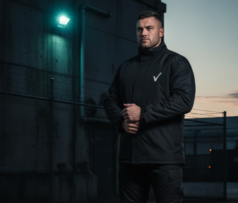 - Ontwerp: Voorzien van een stijlvol V-logo met het woord ‘beveiliging’ creatief verwerkt op de voorkant, en ‘security’ groot afgedrukt op de achterkant.